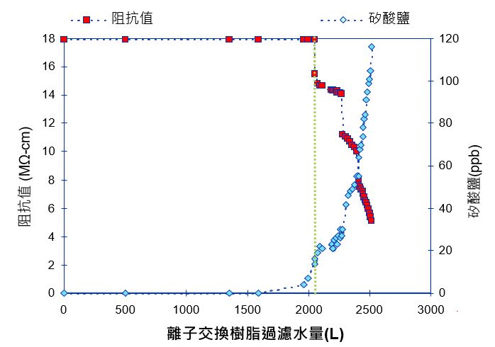 在觀察到純水的明顯阻抗值變化之前矽就已釋放出來。