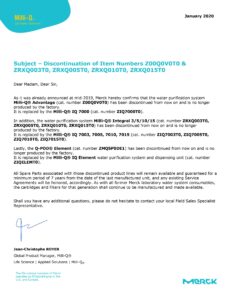 Milli-Q Advantage/Integral 停產通知
