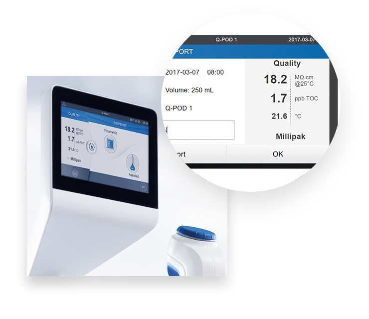 內建軟體可以直接與手機/平板/電腦無線連結,也可以與您的LIMS系統連結,更有效的達到實驗室整合管理。具有可追溯性的系統在每次取水時會自動記錄取水報告,可掃描QRcode或是使用USB下載,丟掉你的用水紀錄本吧!